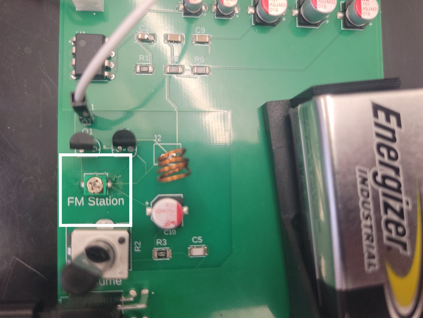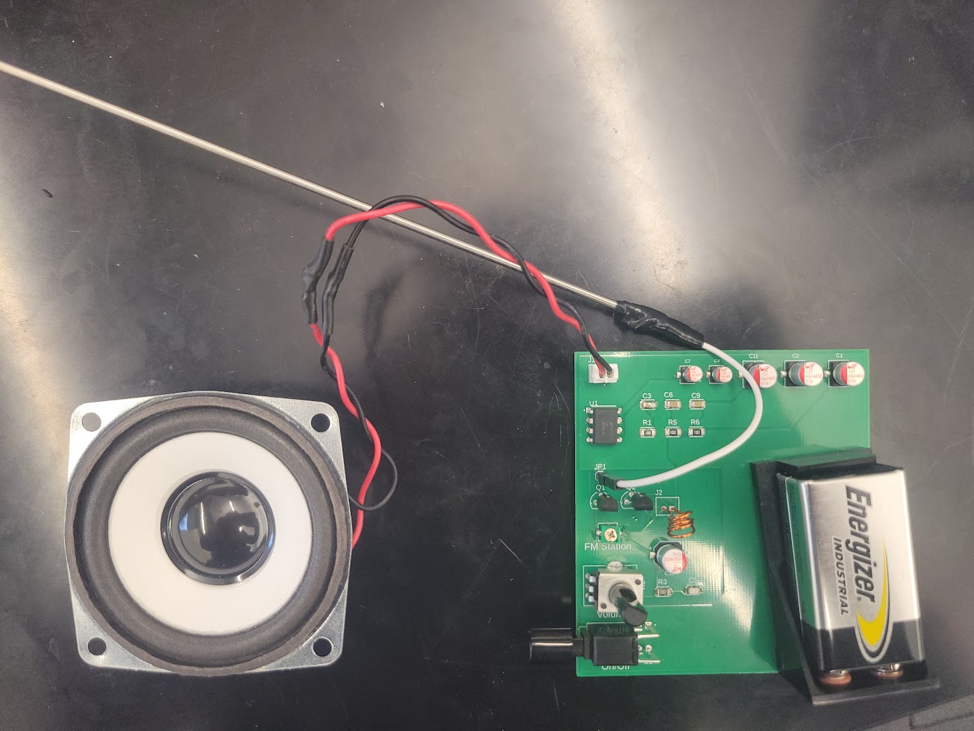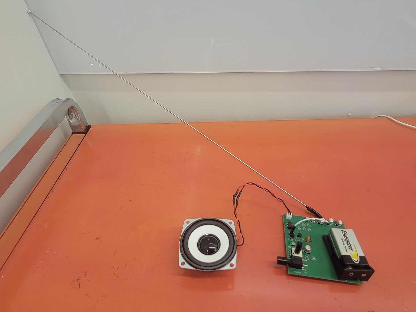 Our final product is currently only producing static noise whose volume is adjustable, but is unable to be tuned to pick up or output any meaningful audio signal.