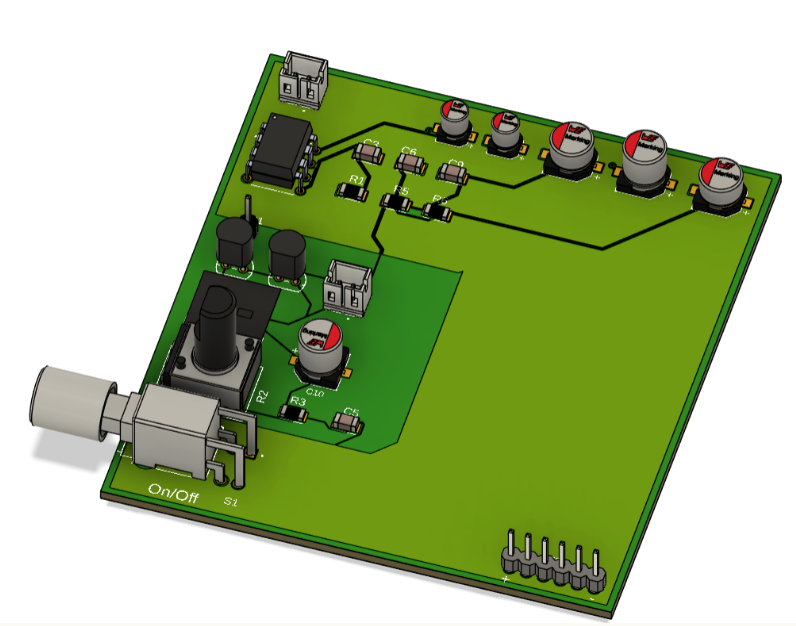 Audio equalizer printed circuit board (PCB) built using 3rd-order active Butterworth filters to independently adjust bass, mid, and treble frequency ranges of songs.![]()
